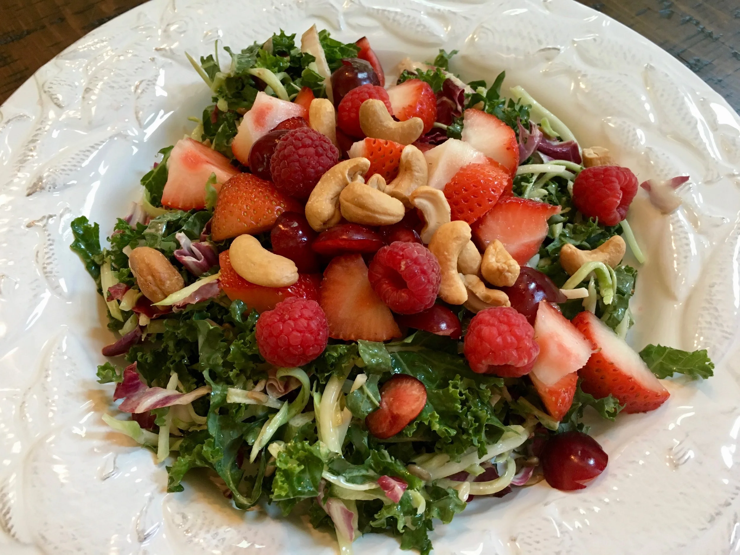 Summer Strawberry, Cherry, and Raspberry Kale Salad with Cashews